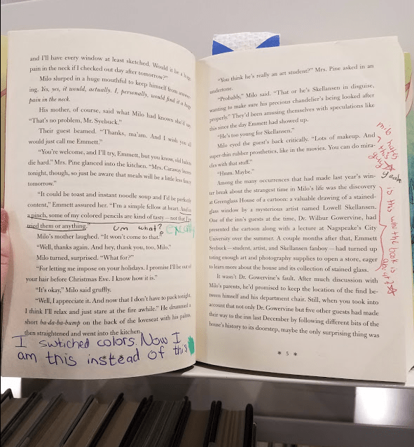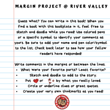 A few weeks in and it’s been crazy successful; the books coming back in have doodles, thoughts, questions, and more. I’m seeing kids respond to one another in the book; reading has become social in my building and I couldn’t be happier. I’ve even had a few teachers start mini Margin Projects in their own rooms with their classroom libraries.