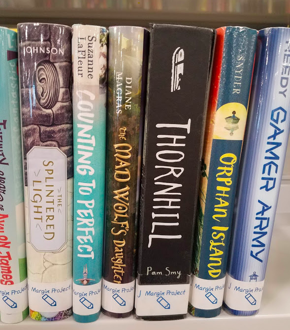 We also created spine labels so the books would be easily recognized as books that were part of the Margin Project.