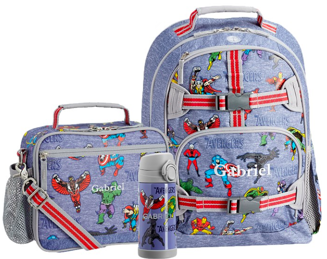 A couple weeks ago, Pottery Barn Kids had a HUGE sale on backpacks, and I sat with him and let him look through all the different designs so he could pick out which one he wanted. He picked glow-in-the-dark Avengers…obviously…and I went all out and got him the matching water bottle and lunchbox.