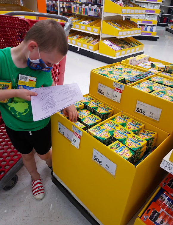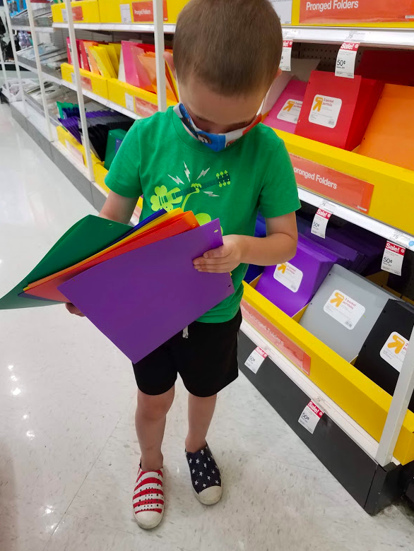 I’m still not quite sure of what his daily schedule will look like, or what sort of materials he will need to have at home, but I even still took him school supply shopping….I was NOT going to skip that back-to-school ritual. We went to Target and he proudly carried his list and “read” it to me as he threw his supplies into the cart.